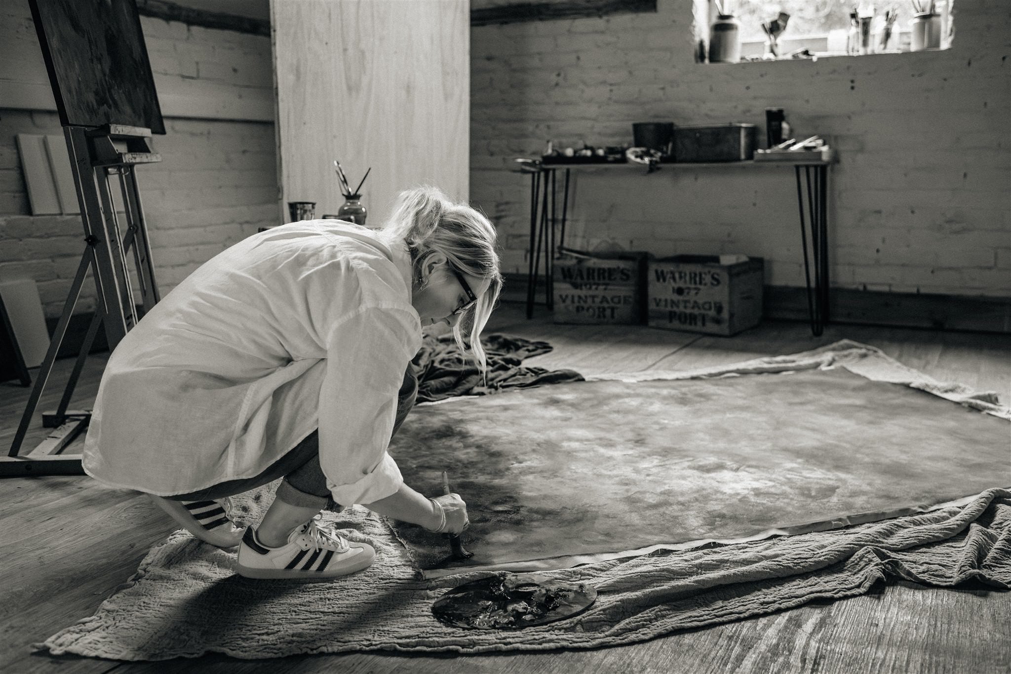 Sarah’s abstract paintings and handpainted canvas backdrops are created using the natural environment surrounding her on the farm as a core source of inspiration.